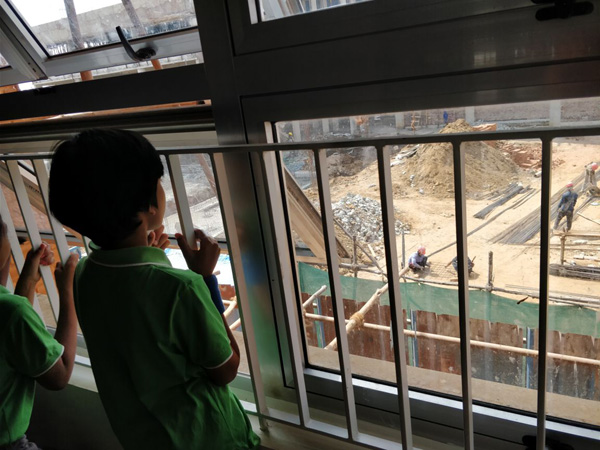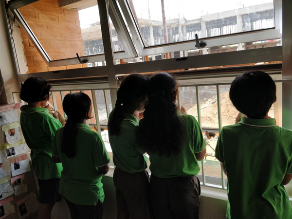 Very often we go to the 2nd floor to see the work progressing. It is exciting to hear the conversations amongst our students. A real life experience for our students as they watch their school being built.